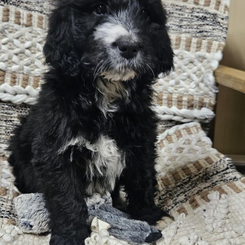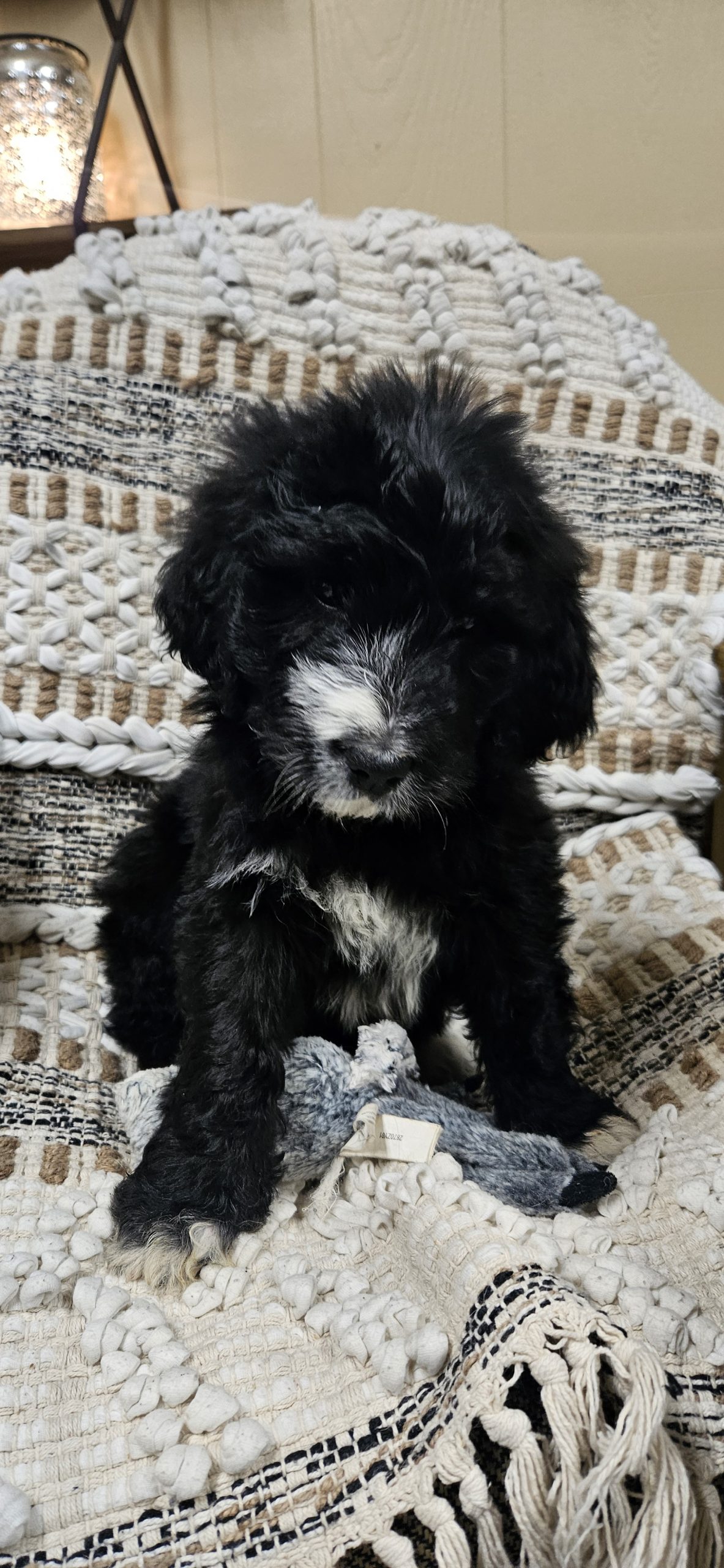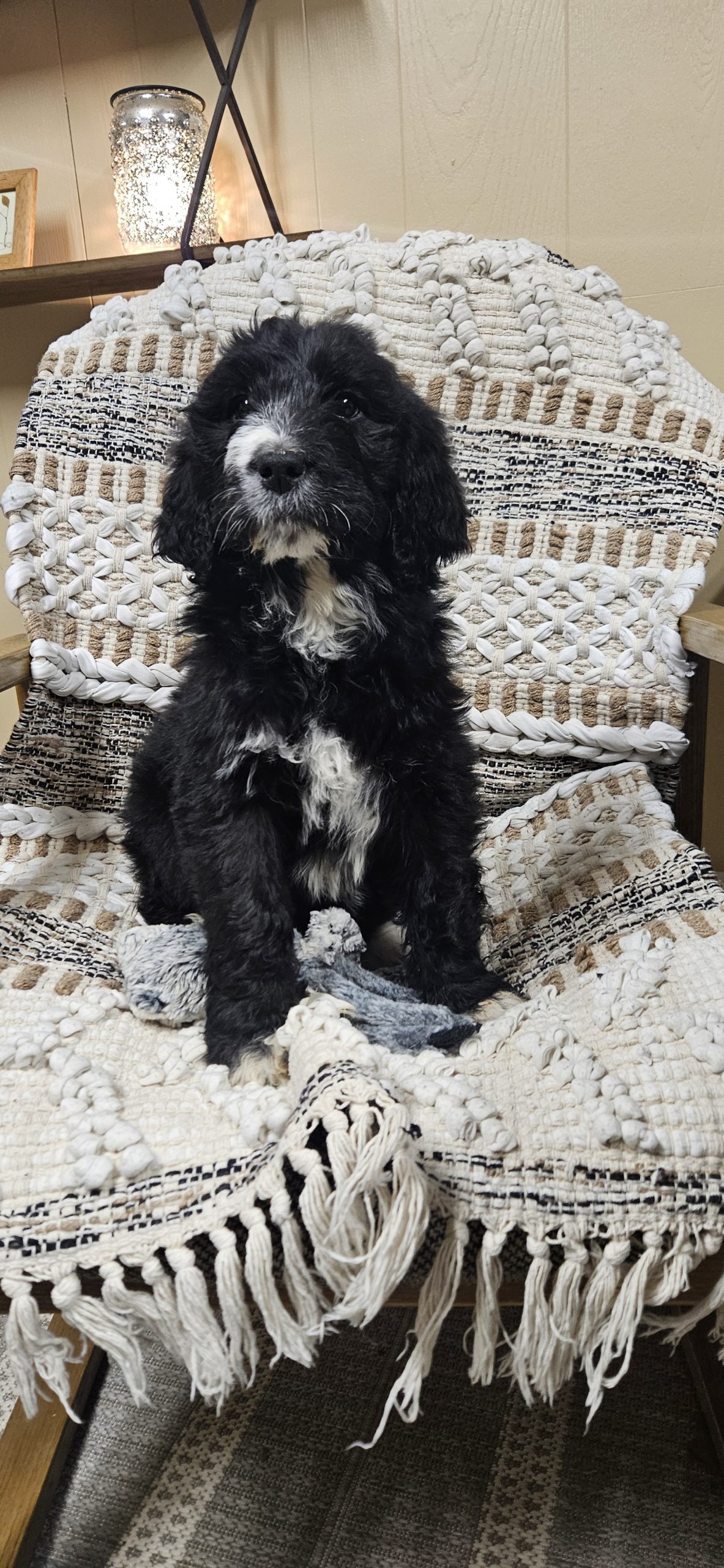 I was bottle fed along with my 4 siblings due to not having a mother. The Pyredoodle cross is known to be loyal, calm and protective family dogs that are often low-shedding and considered "gentle giants". Adult weight will be 70 to 80 lbs. I will be ready for my forever home on February 28. Please go to our website to fill out an application.