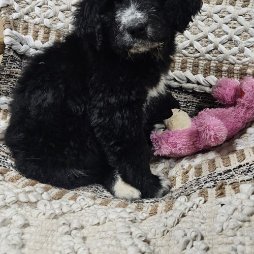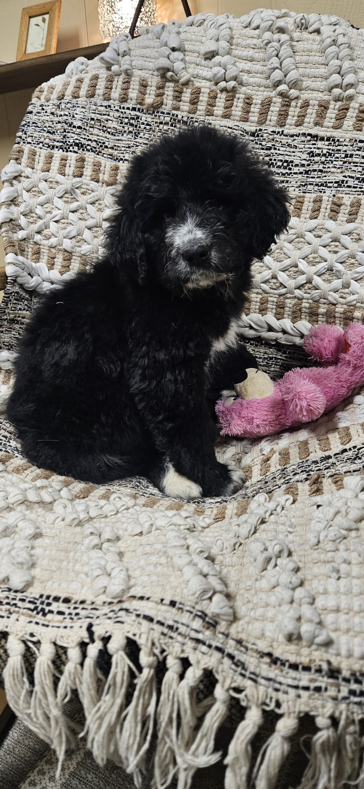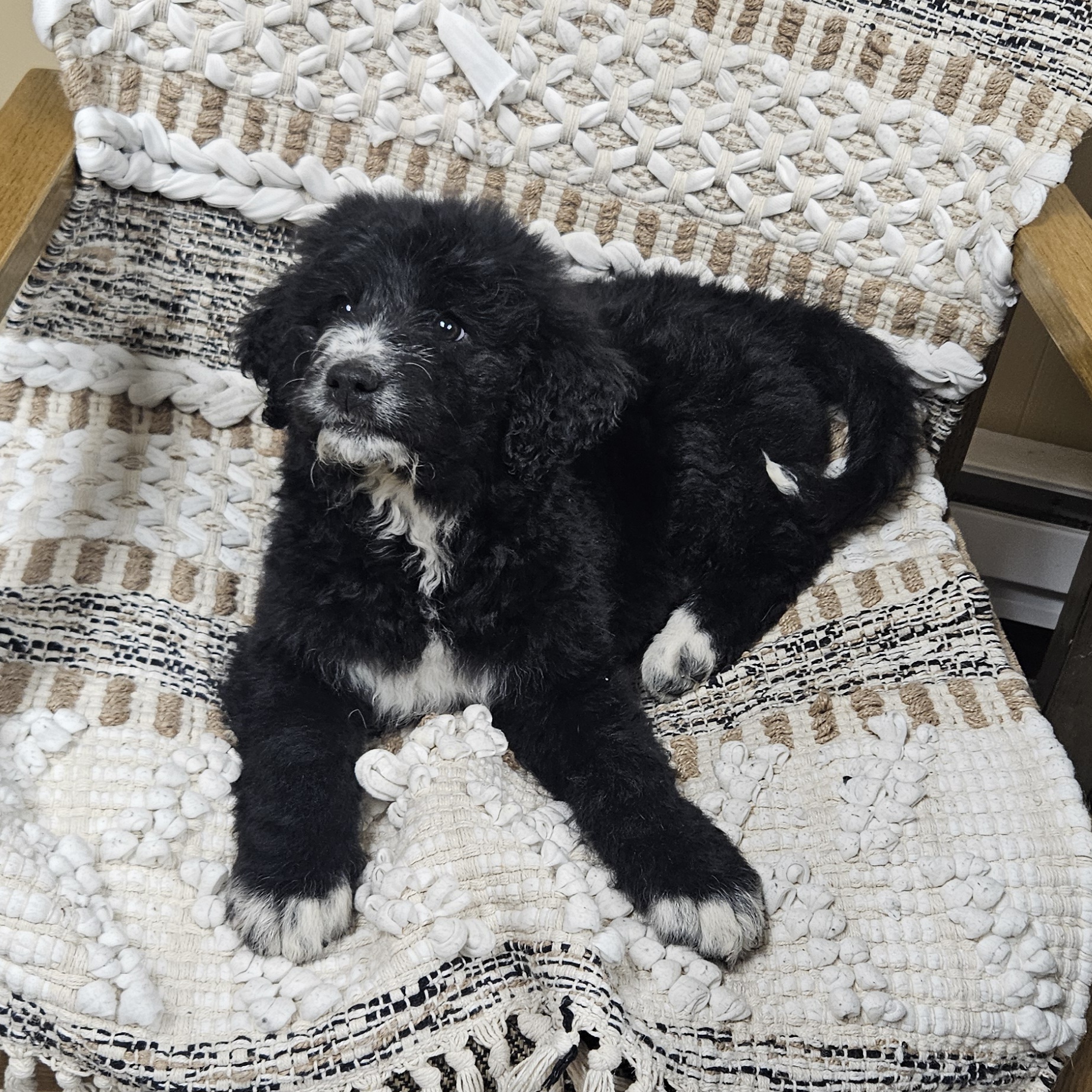 I was bottle fed along with my 4 siblings due to not having a mother. The Pyredoodle cross is known to be loyal, calm and protective family dogs that are often low-shedding and considered "gentle giants". Adult weight will be 70 to 80 lbs. I will be ready for my forever home on February 28. Please go to our website to fill out an application.