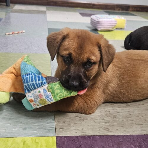 I was born here at Field of Dreams with my 4 other siblings! I love to play with toys and with others! I really enjoy time with people even if that is sleeping in your lap. I am very food motivated, and love treats! I am not quite yet potty trained, but I am learning! My adoption fee will be $200! Fun Facts: My mom is Pebbles! And I have short legs like my momma.