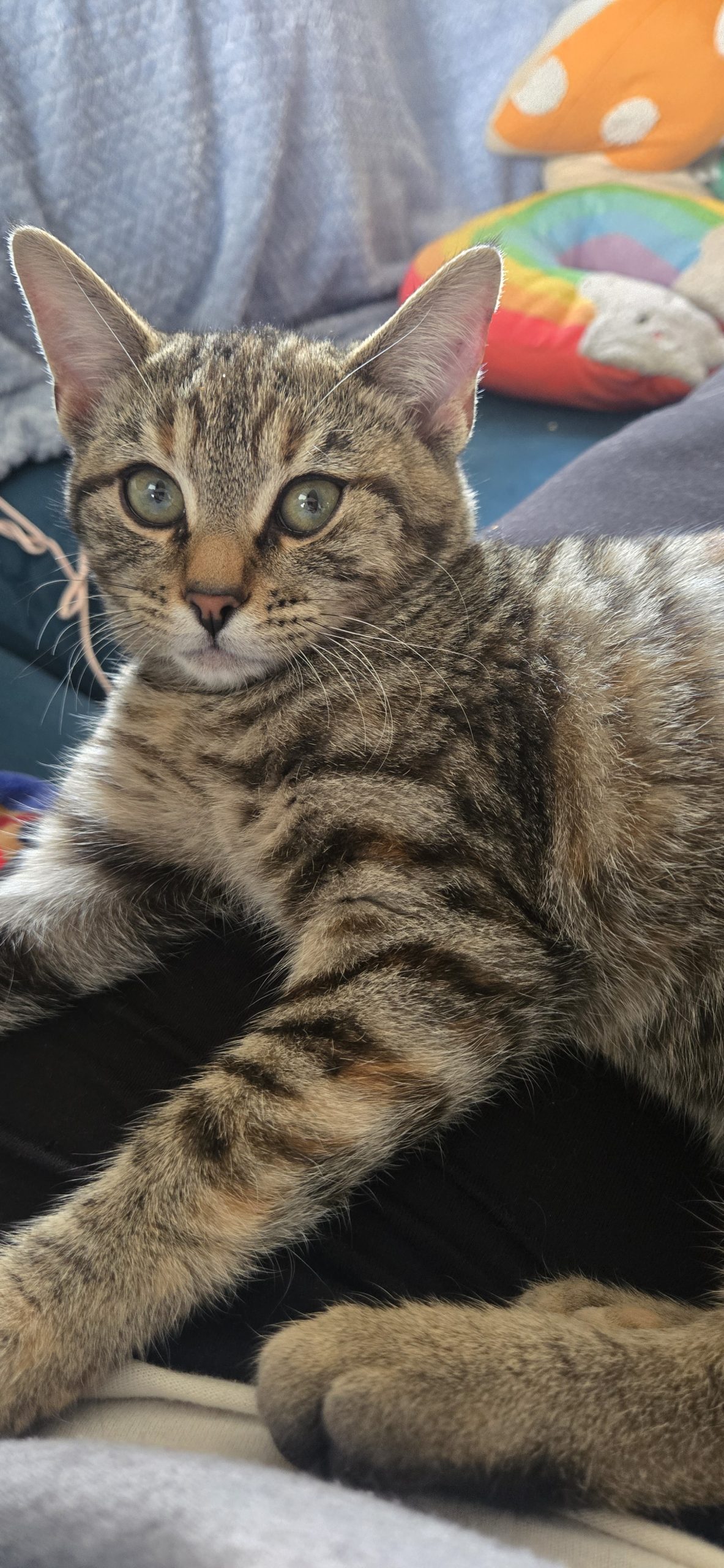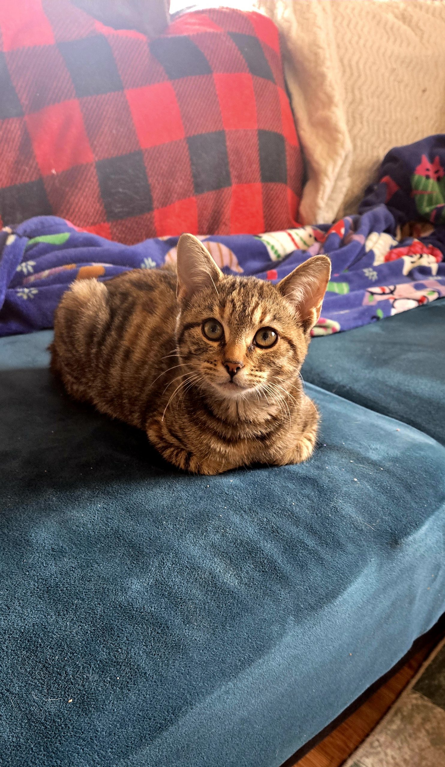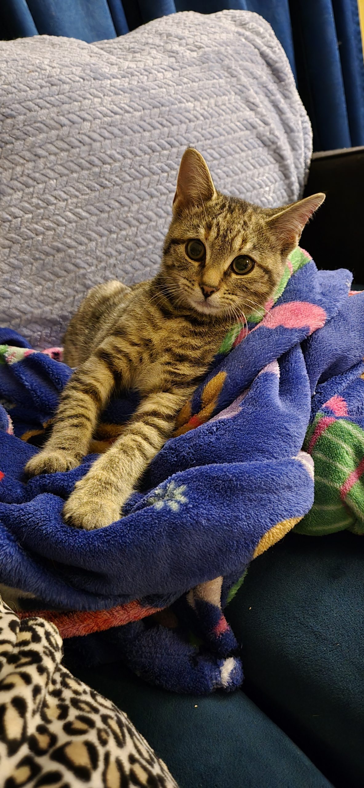 I was found roaming alone one someone's property. I love playing with my foster cat siblings. I am very playful but also love snuggling. I am very afraid of dogs and would not do well in a house with them. Please let me show you how much love I have to give!