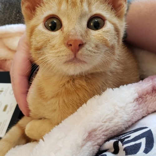 My sibling and I were found after our mom disappeared and we were nearly starving to death. With a lot of TLC I’m a healthy but tiny for my size kitten. I can’t wait to make your home my new home!