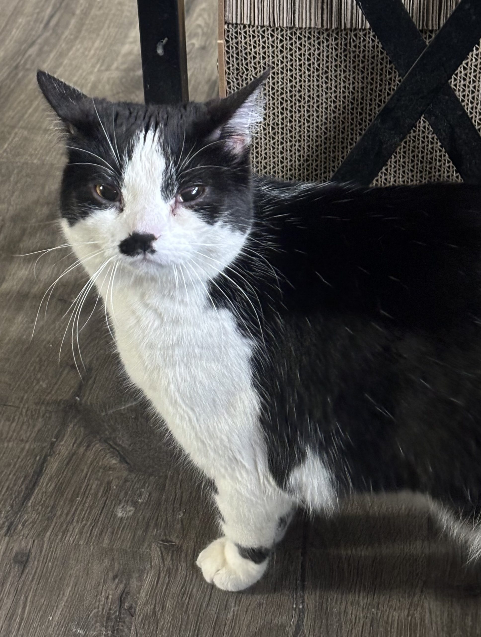 Our owner’s large dog turned on us and thought we were prey so he kept the dog and surrendered us. I’m very sweet and loving and love cuddles and pets. Eva has no issue with other cats and should do well with children. She may need a slow introduction if there’s a dog in the picture due to her past but I think she’ll do fine if done correctly