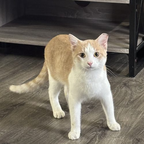 Our owner surrendered us when his large dog turned on us and saw us as prey. We’ve adjusted well in our foster home with other cats. Garfield may need a slow introduction to dogs due to his past. He may also be timid around young kids but warms up to older children quickly!