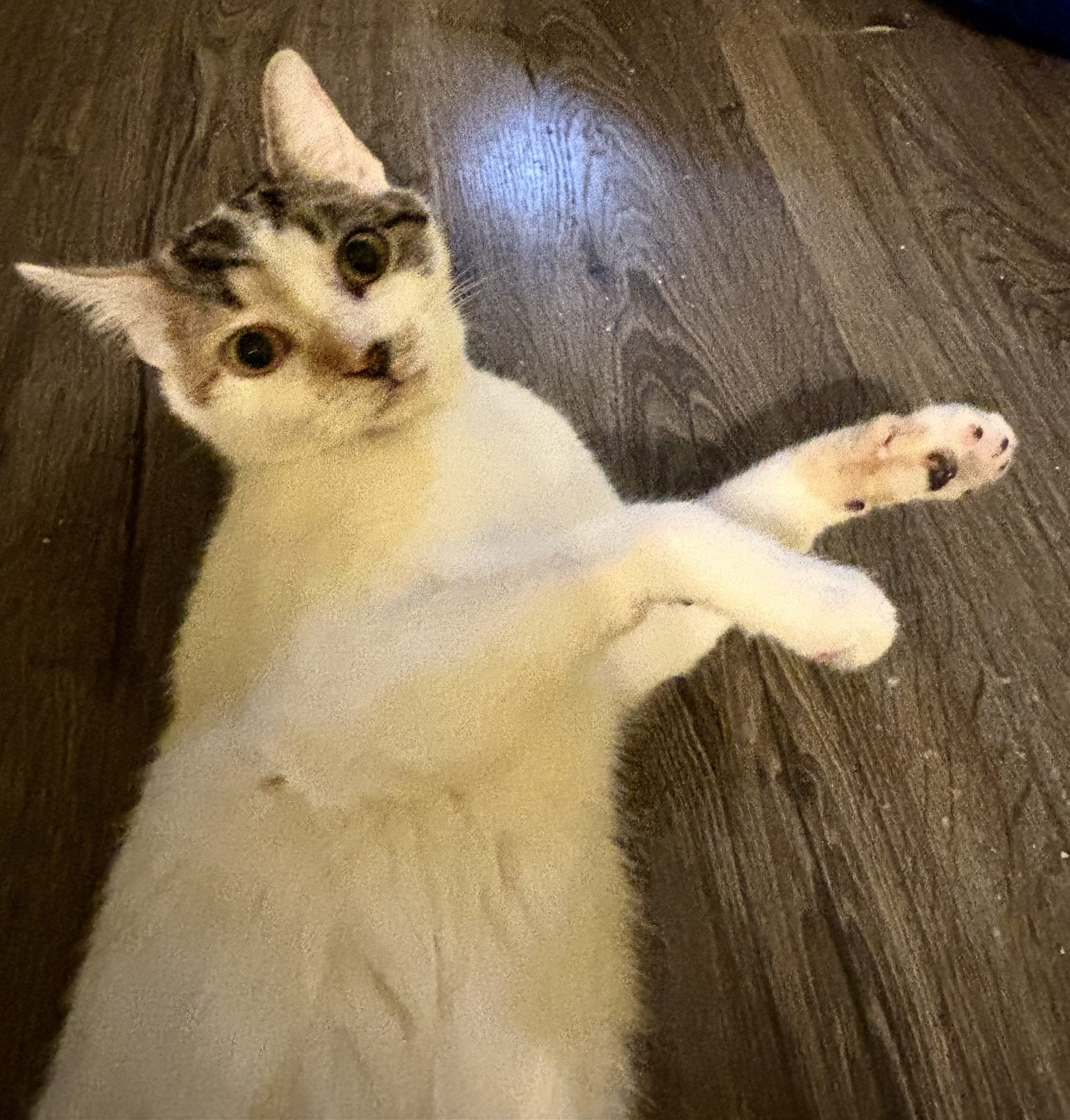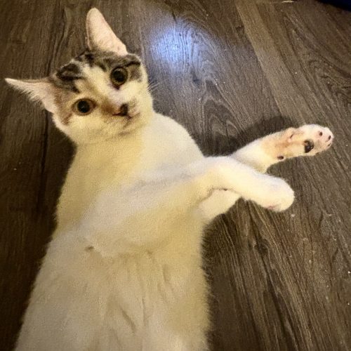 Our owner surrendered us when his large dog decided we looked like prey. We’ve recovered well in our foster home and trust humans again. I may be scared of dogs without a slow introduction due to my past. I should do well with kids!