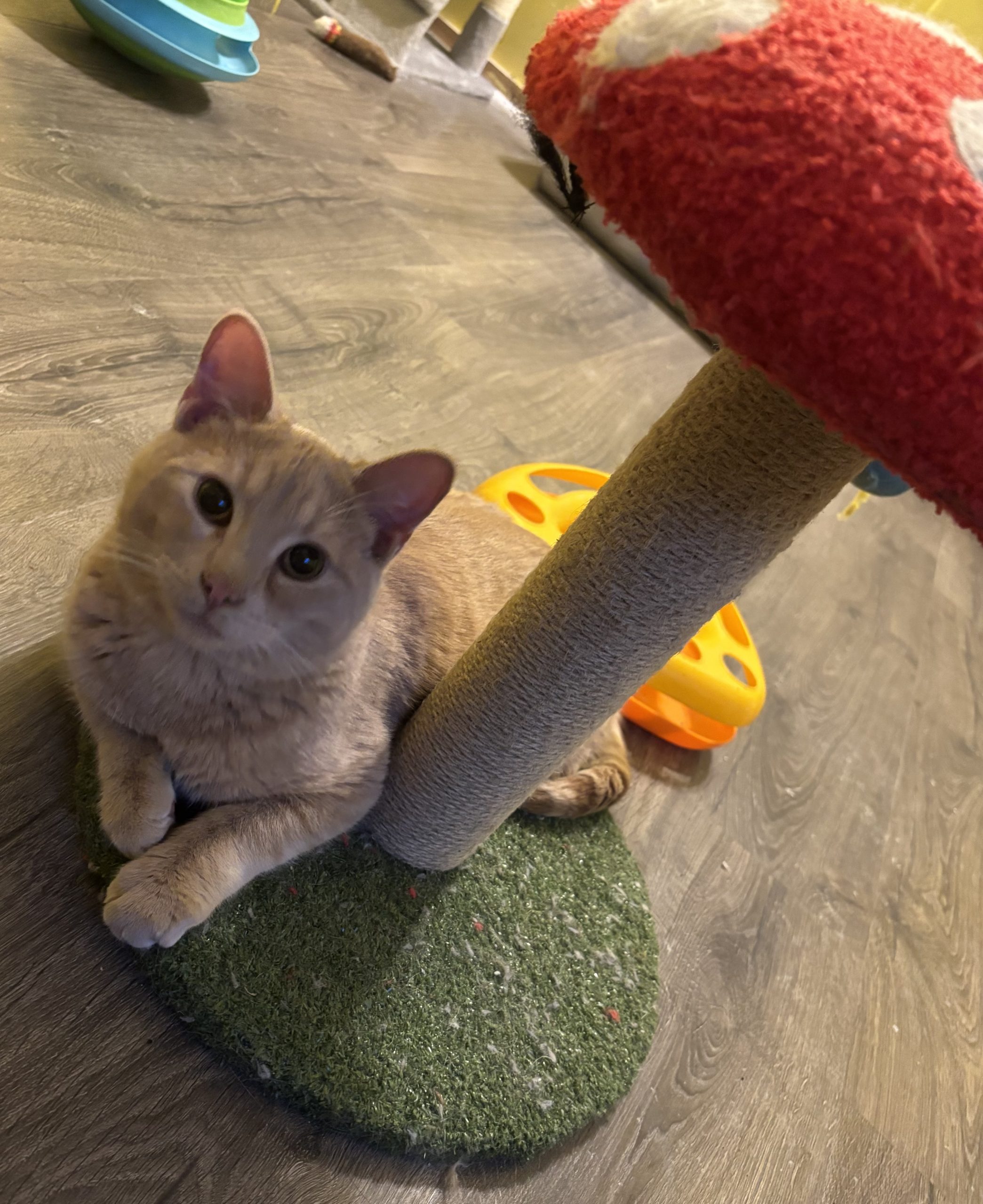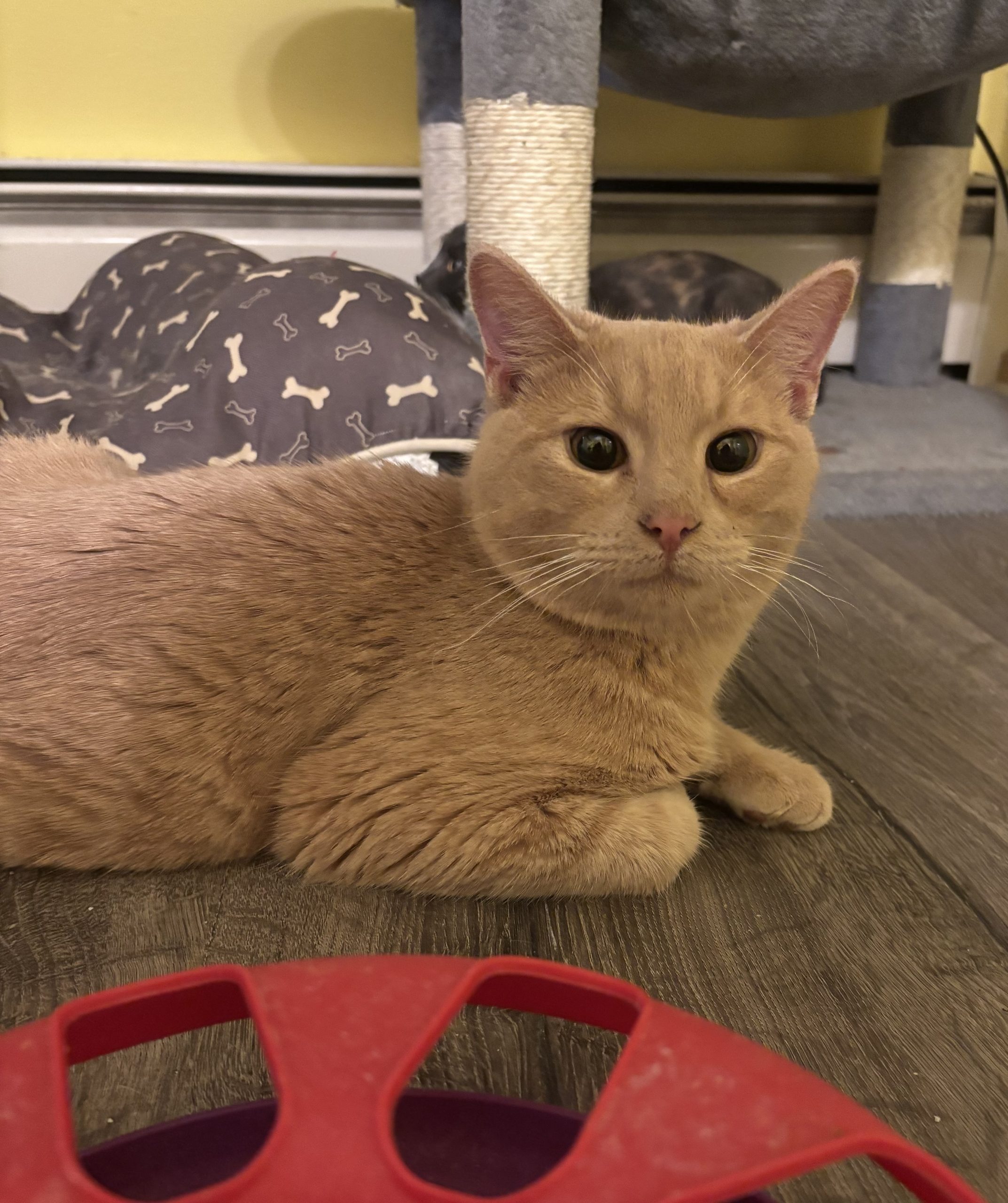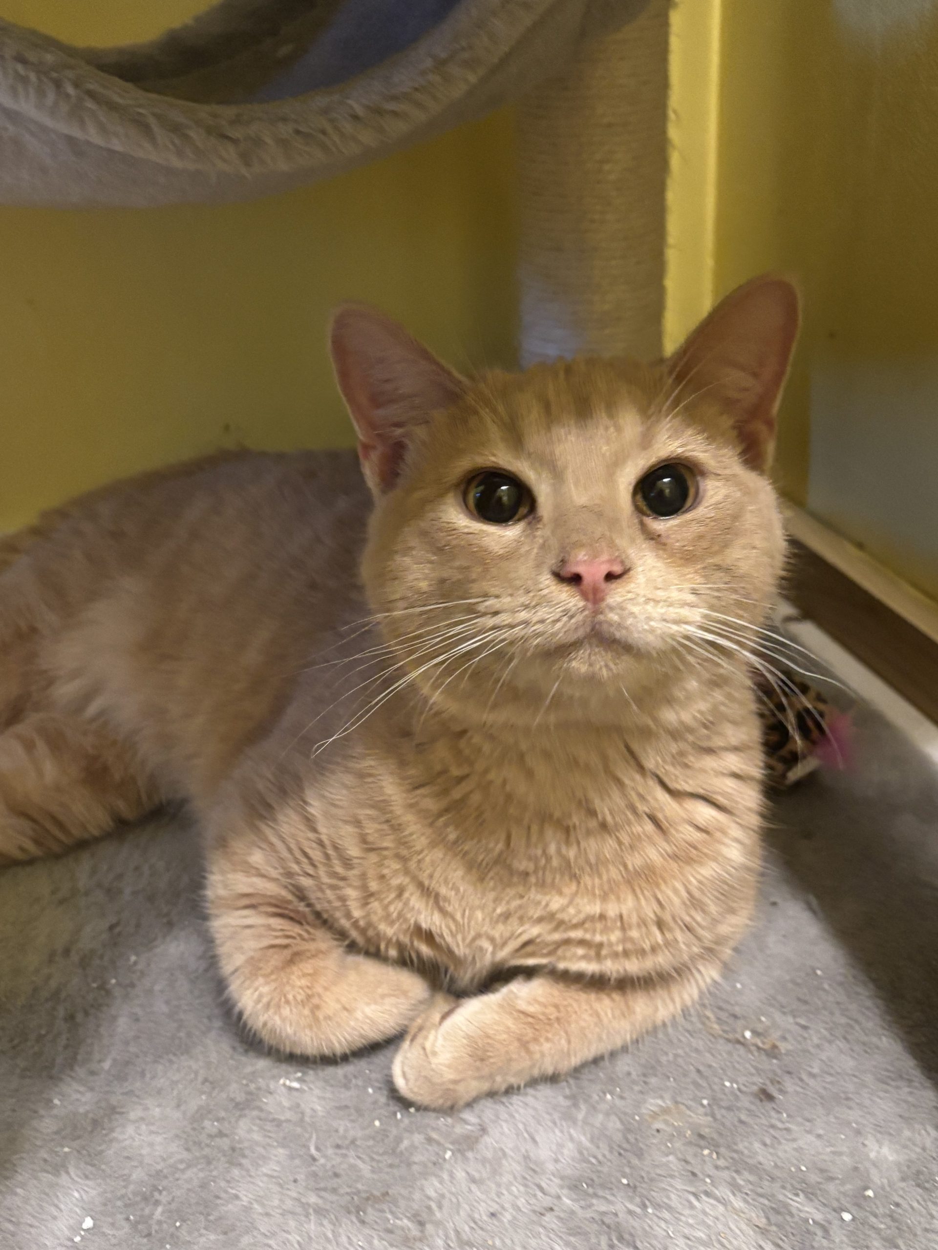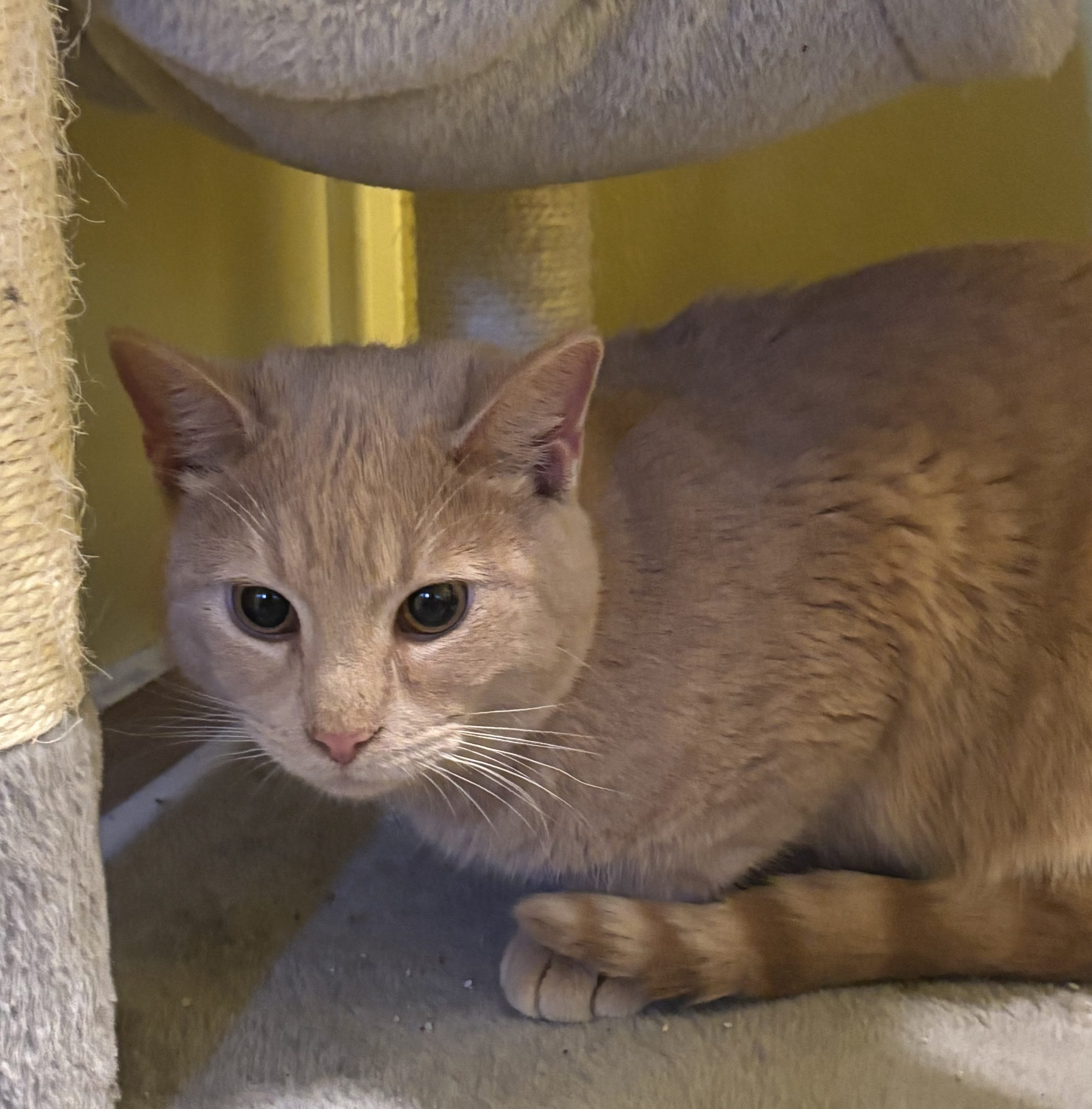 Karter came to us with his sister when their owner realized she could not financially afford the medical care for two pets- no judgement, at least she reached out and asked for help. Karter is more outgoing but still scared and confused about where he is. He loves chin scratches though!