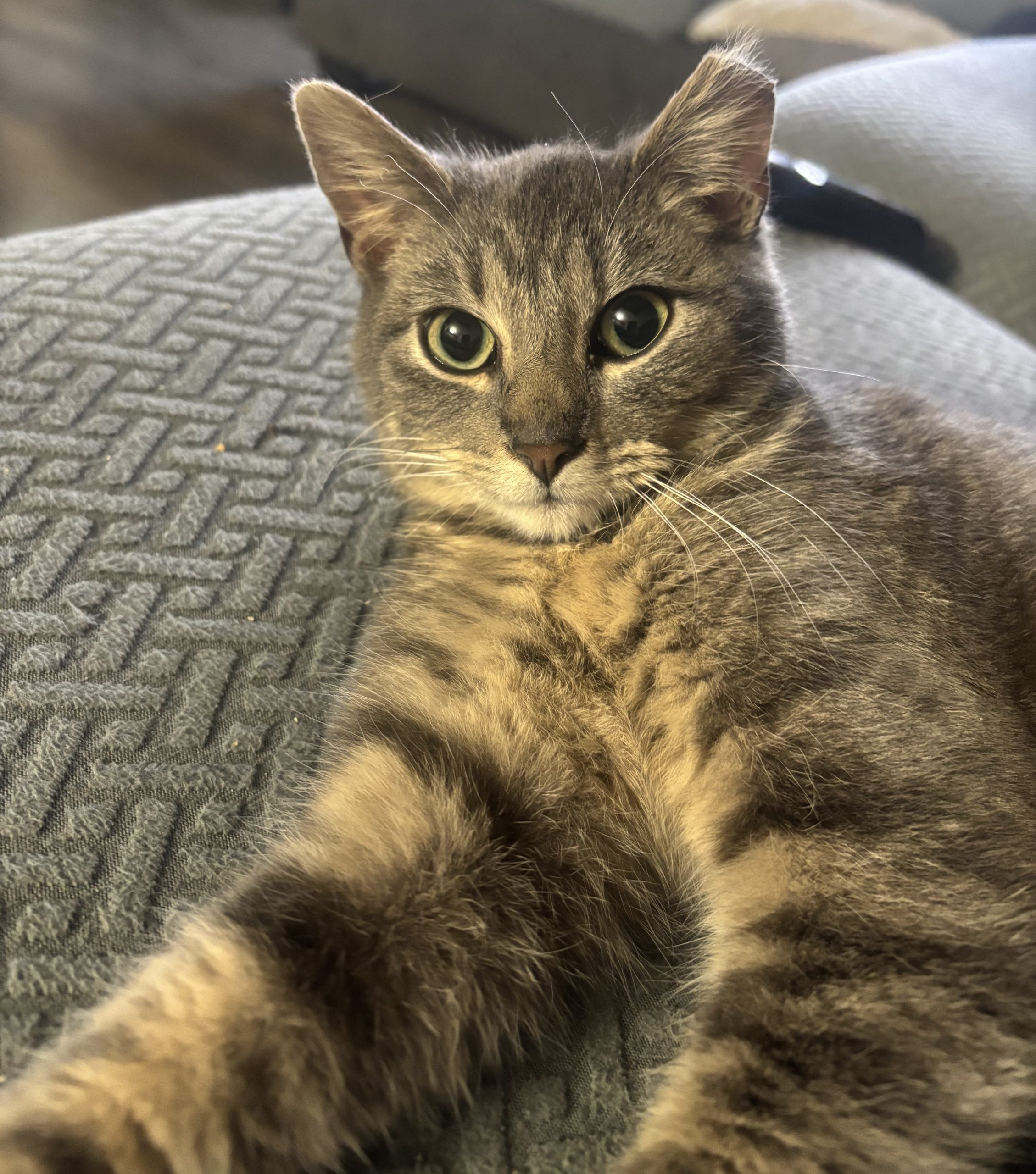 Lily was scooped up during one of our TNR projects (Trap, Neuter, Return to slow down the feral cat population) and when it was time to let them go she was clearly a displaced former house pet. Lily LOVES people but is not fond of other cats. Like at all. Like it might be a deal breaker. She had to learn how to be tough to survive tossed out on the streets so she sees other cats a competition. But with humans so is SO snuggly and will even jump up on your shoulder or in your arms if you hold them out