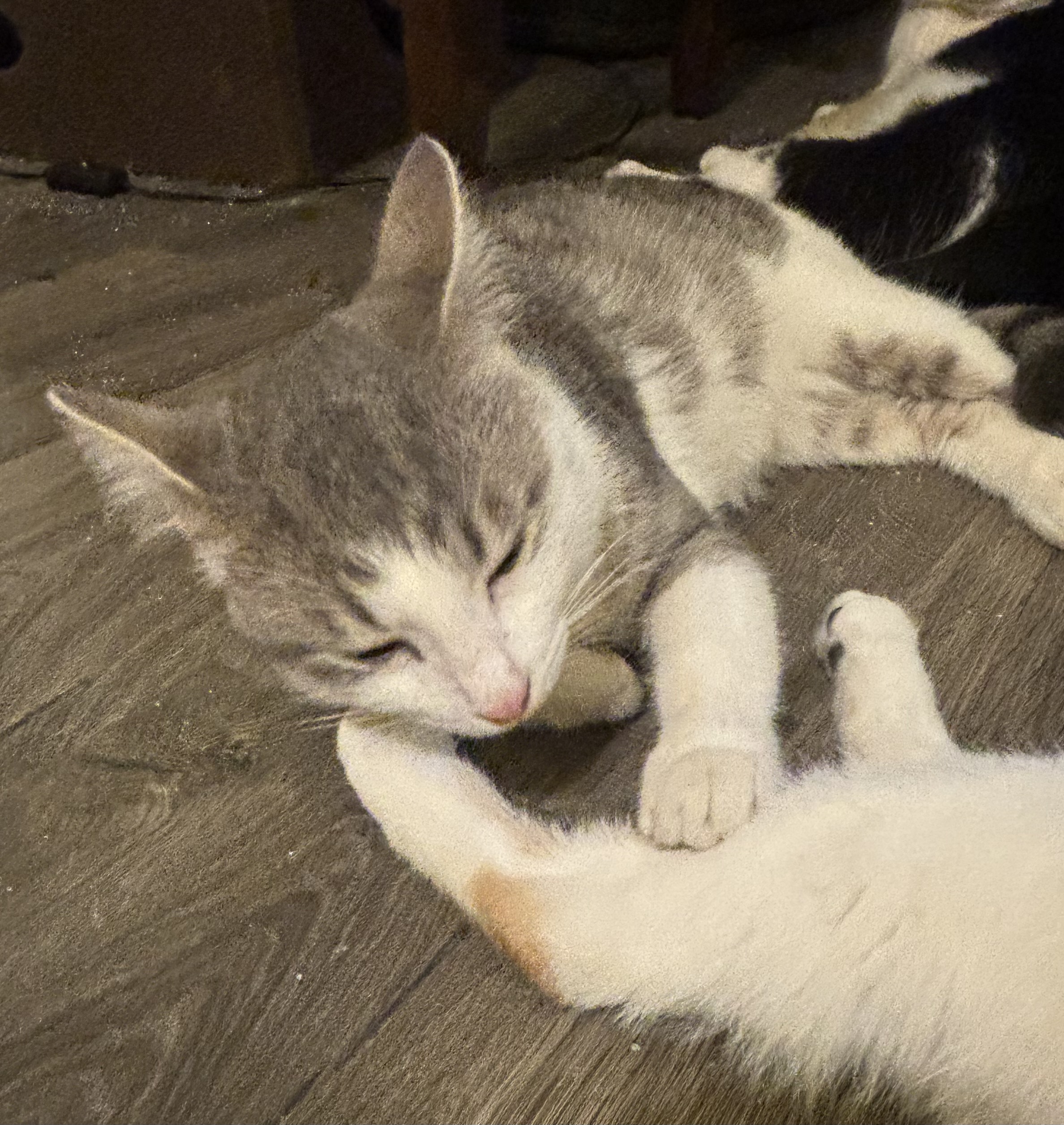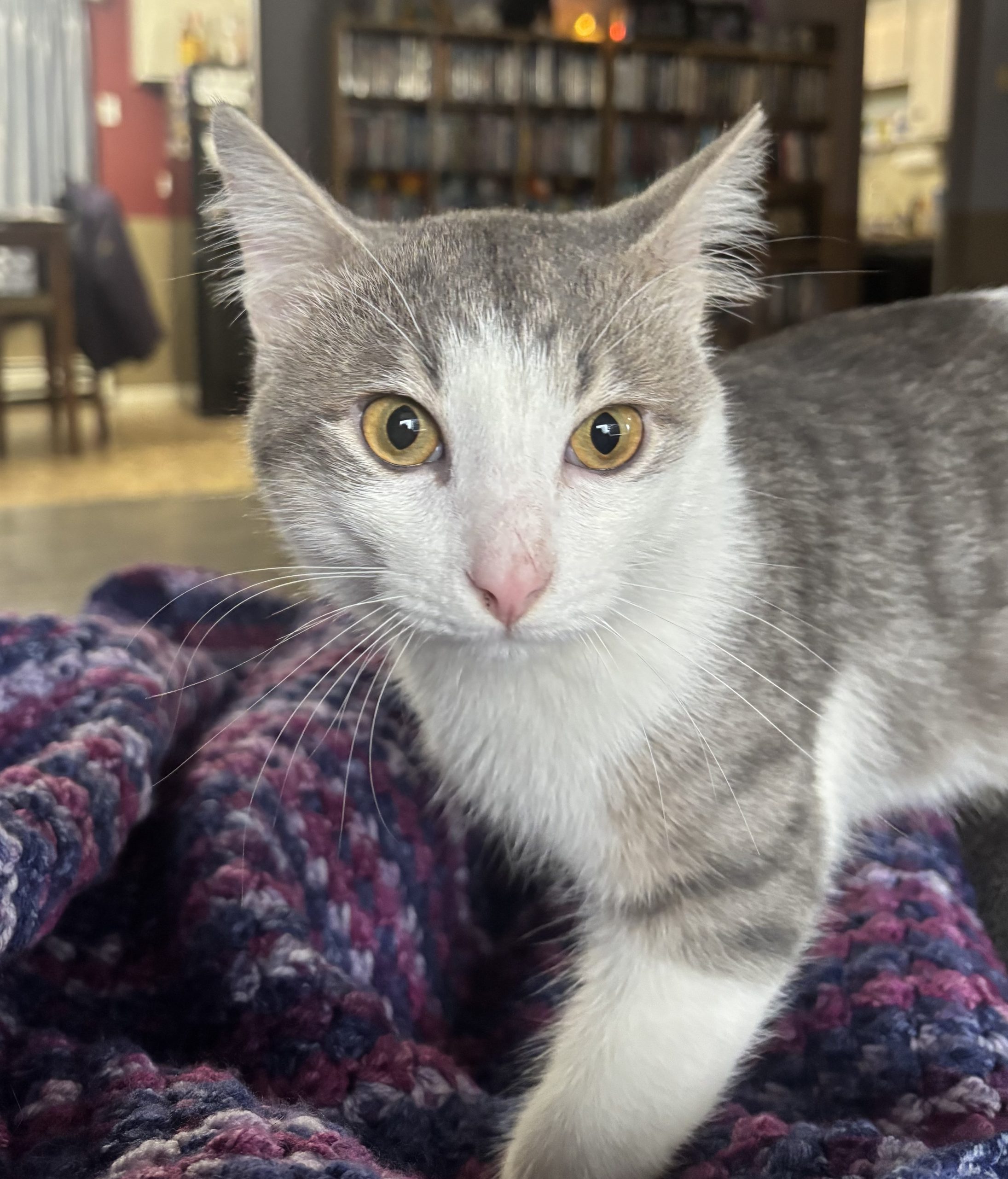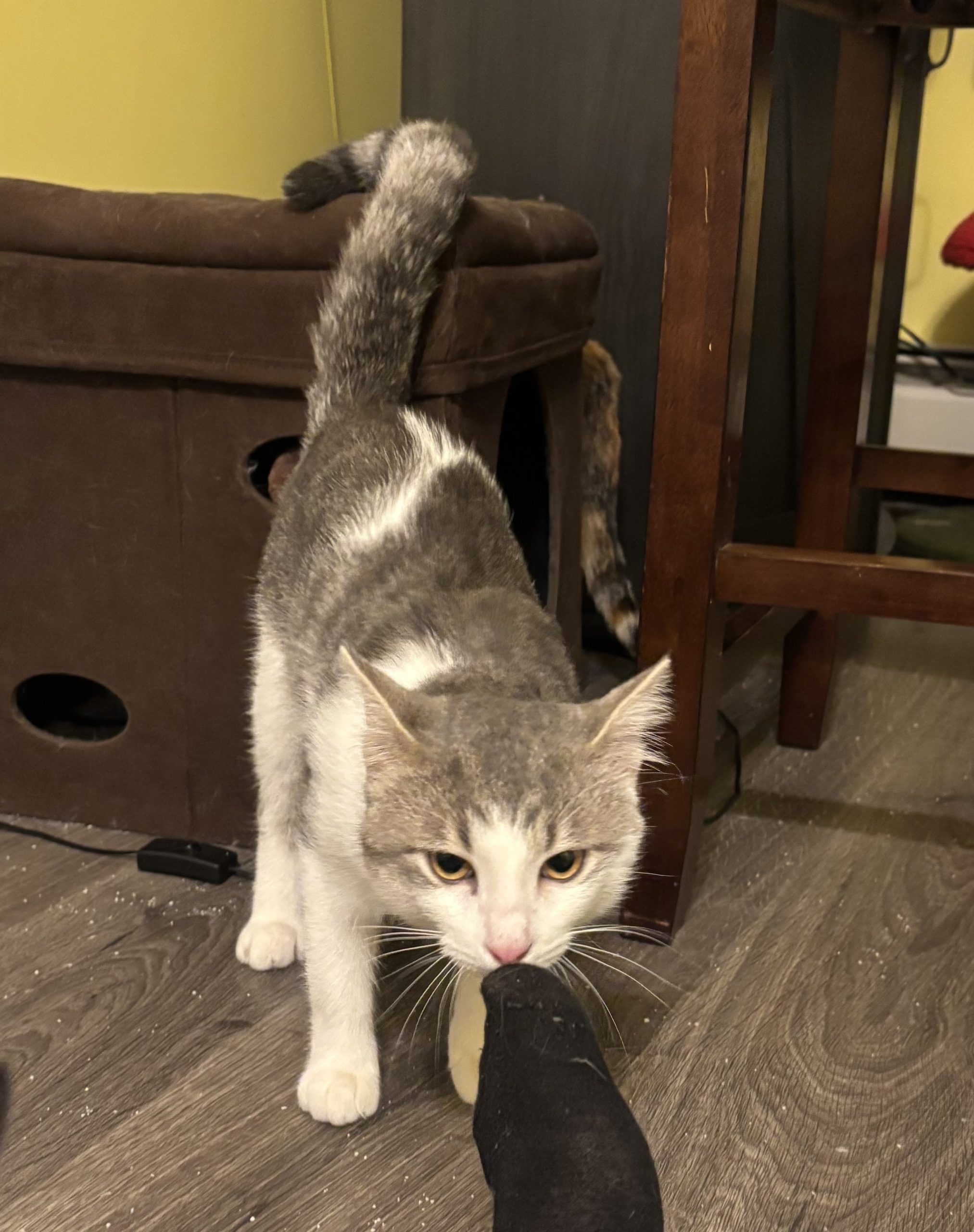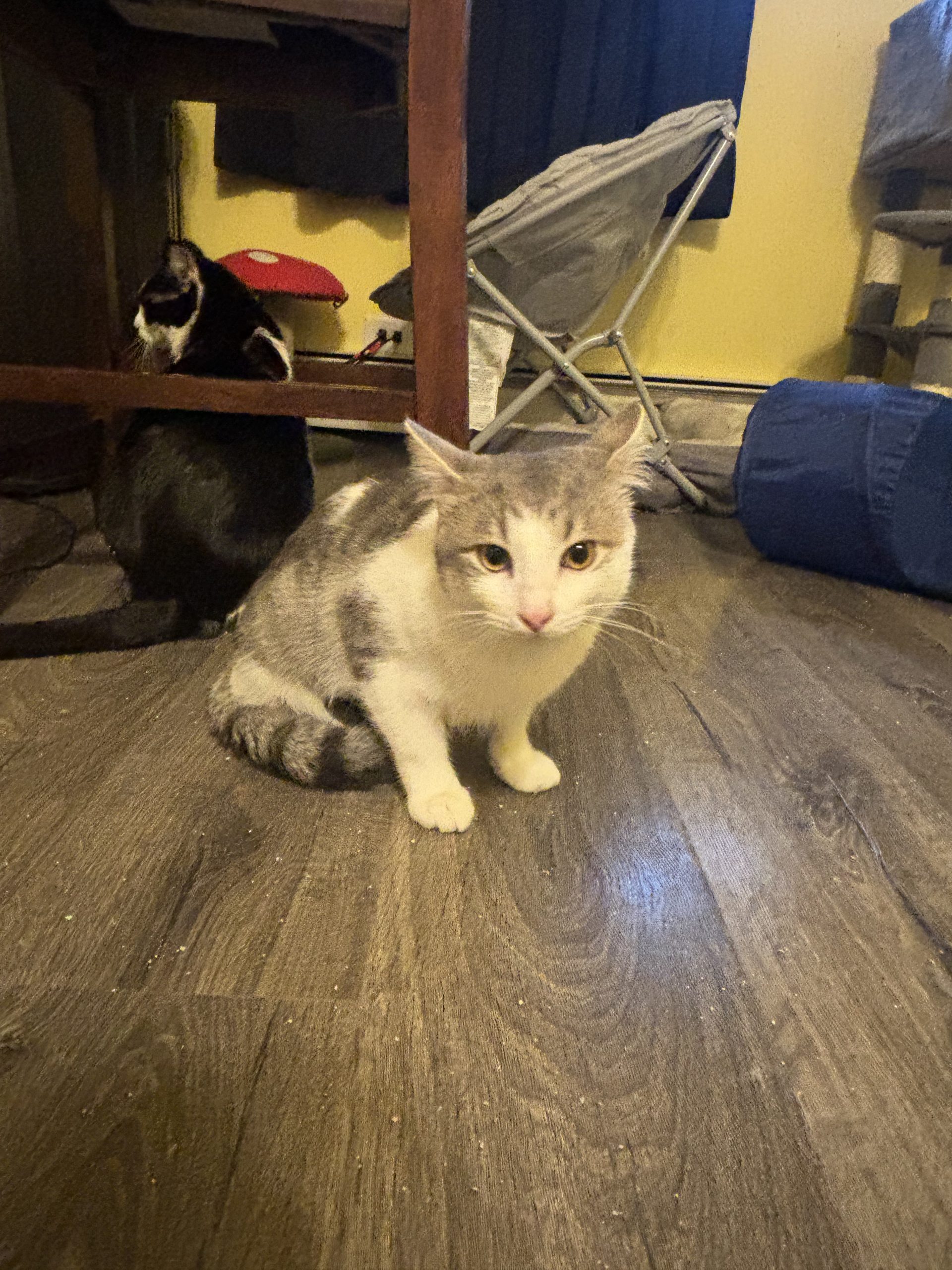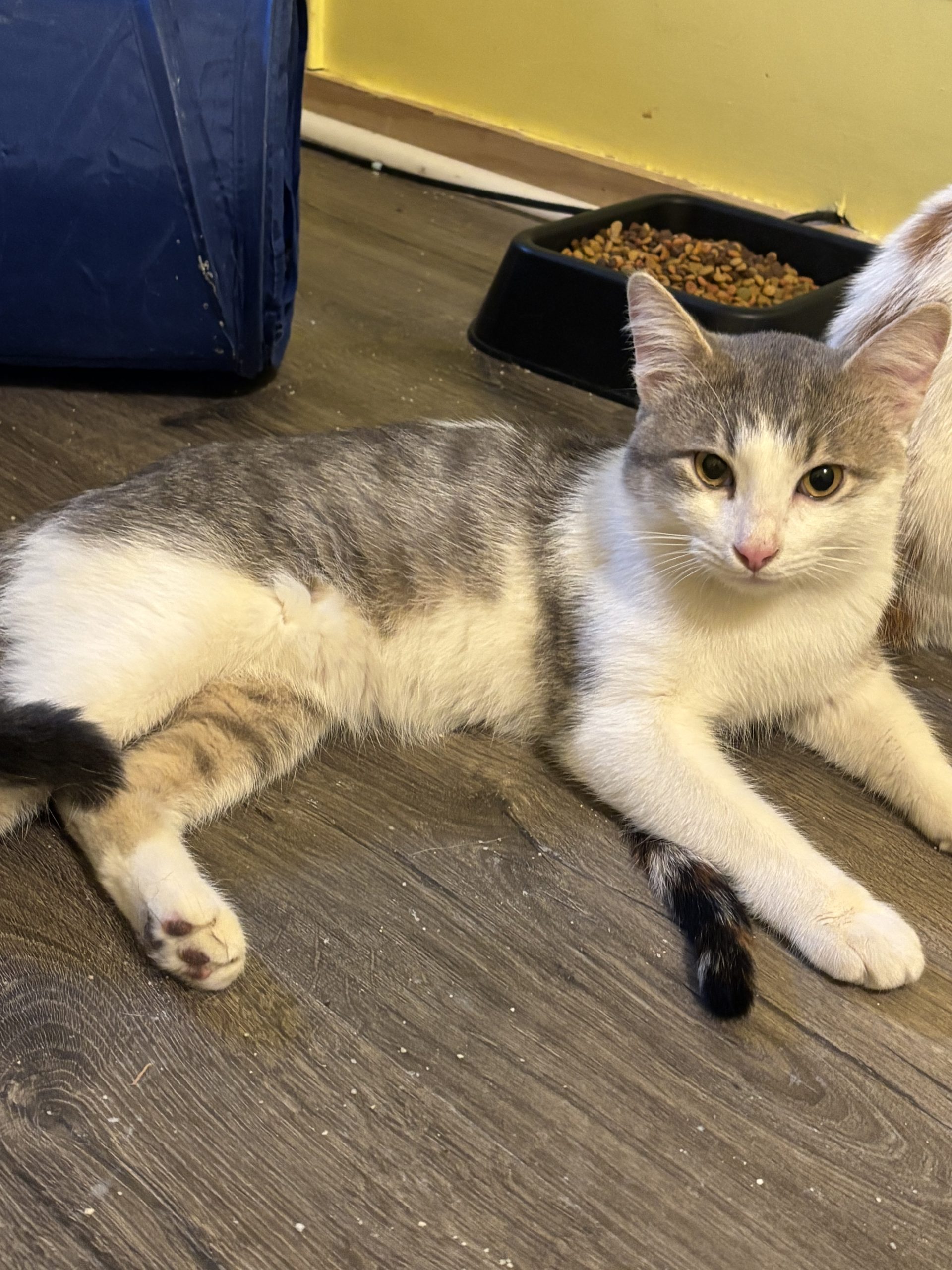 Our owner surrendered us when his large dog turned on us and thought we were prey. I’ve calmed down nicely in my foster home with other cats no problem. Thor might need a slow introduction if a dog is involved due to his past. Thor will make a great family companion!