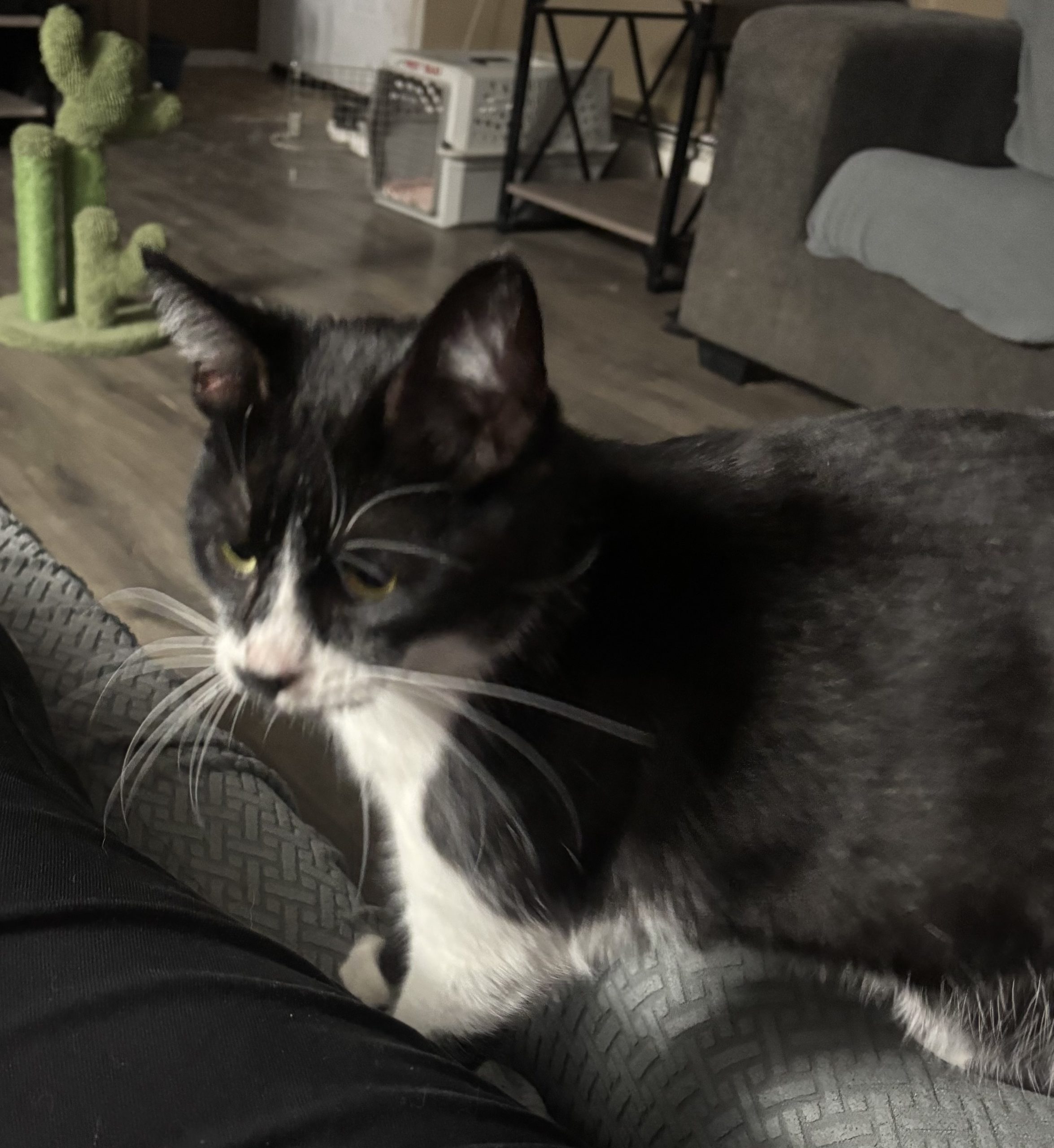 Zipper came to us when her owner was being admitted to a nursing home and she couldn’t take her and no family stepped up to take her so we did. She is declawed in the front, not something we support but what’s done is done. Because of that for safety she will need to be a strictly indoor cat. She was first adopted at about 2 years old and is approximately 4 years old now. Zipper is VERY social and friendly/cuddly but a little slow to warm up to other cats. She doing well with adjusting to a foster home and four other fosters in her foster home. Zipper is outgoing and will make a great companion for someone, hopefully third times a charm!